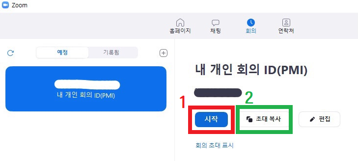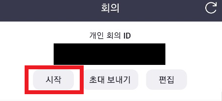 2. 개인 회의 ID 아래 '시작' 버튼 누르기