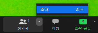 * 일회성으로 회의를 하는 경우에는 반드시 새 회의 버튼을 클릭하여 회의를 시작하고, 참가자 버튼 오른쪽 ^ 버튼을 클릭하면 초대 버튼이 나옵니다. 이 버튼을 누르고 '초대 링크 복사' 버튼을 눌러 참가자들에게 링크를 보내면 됩니다.